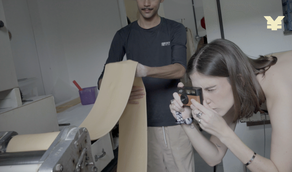 Durante a gravação, Julia carrega sua câmera fotográfica e registra detalhes que atravessam a experiência: a textura da massa, a luz que entra pela janela, o gesto repetido na cozinha, a arquitetura do espaço.