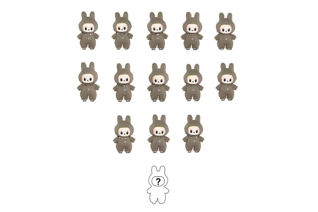 Mas o leilão vai além das roupas. Fãs de toys e art collectibles encontrarão uma seleção de 14 figuras únicas do personagem Labubu, co-desenhadas com sacai e Carhartt WIP, apresentadas em blind boxes. Cada peça é um híbrido de arte, moda e cultura urbana — com potencial instantâneo para se tornar ícone de coleção.