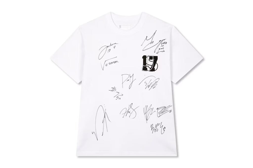 No coração da iniciativa está um leilão exclusivo com peças raras, icônicas e altamente desejáveis — algumas delas usadas e assinadas pelos membros do SEVENTEEN, outras criadas sob medida por Chitose Abe, mente por trás da sacai. Um dos destaques é a jaqueta de couro personalizada sacai, usada no clipe de “Bad Influence”, o mais novo single do grupo, produzido por Pharrell. Também faz parte do acervo leiloado uma camiseta J–17–S autografada por 11 integrantes da banda.