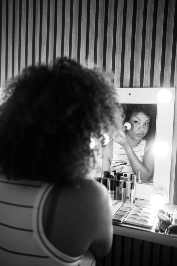 Minha primeira turma profissional era composta por mulheres que estavam vivendo lutos, separações. Foi ali que percebi que maquiagem, para mim, nunca seria só sobre beleza. Era acolhimento”.