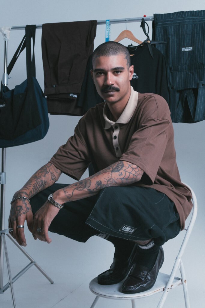 A vivência no BMX, a proximidade com o grafite, o hip hop e o skate moldaram sua visão estética desde cedo. A moda, para Dedão, precisa ser funcional, resistente e inclusiva. “Sempre vi que as roupas feitas para o streetwear não consideravam todos os corpos ou realidades. Eu queria modelagens diferentes, pensadas para quem vive na rua, senta no chão, cai da bike. Então decidi aprender a fazer eu mesmo”.