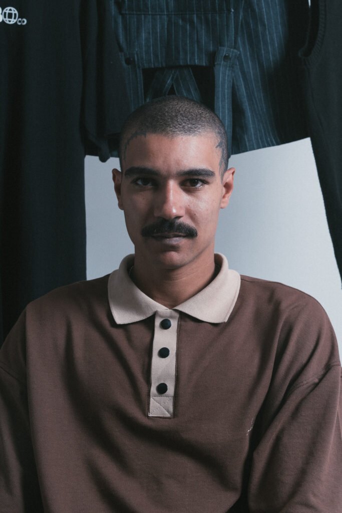 “Ele precisava de ajuda com audiovisual para o Instagram da confecção, e eu já queria retomar o projeto da marca com mais estrutura. Em troca da ajuda, ele me ensinou tudo: cortar tecido, riscar molde, entender processo de produção. Ali eu vi como nascia uma peça do zero, e percebi que podia fazer com as próprias mãos aquilo que imaginava”.